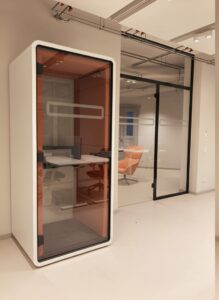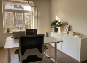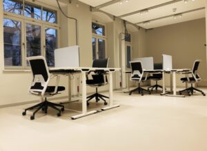Alle Büros sind modern und hochwertig mit Stühlen, elektrisch verstellbaren Tischen und Büroschränken ausgestattet. Zusätzlich besitzen drei Büros eine eigene Telefonkabine.