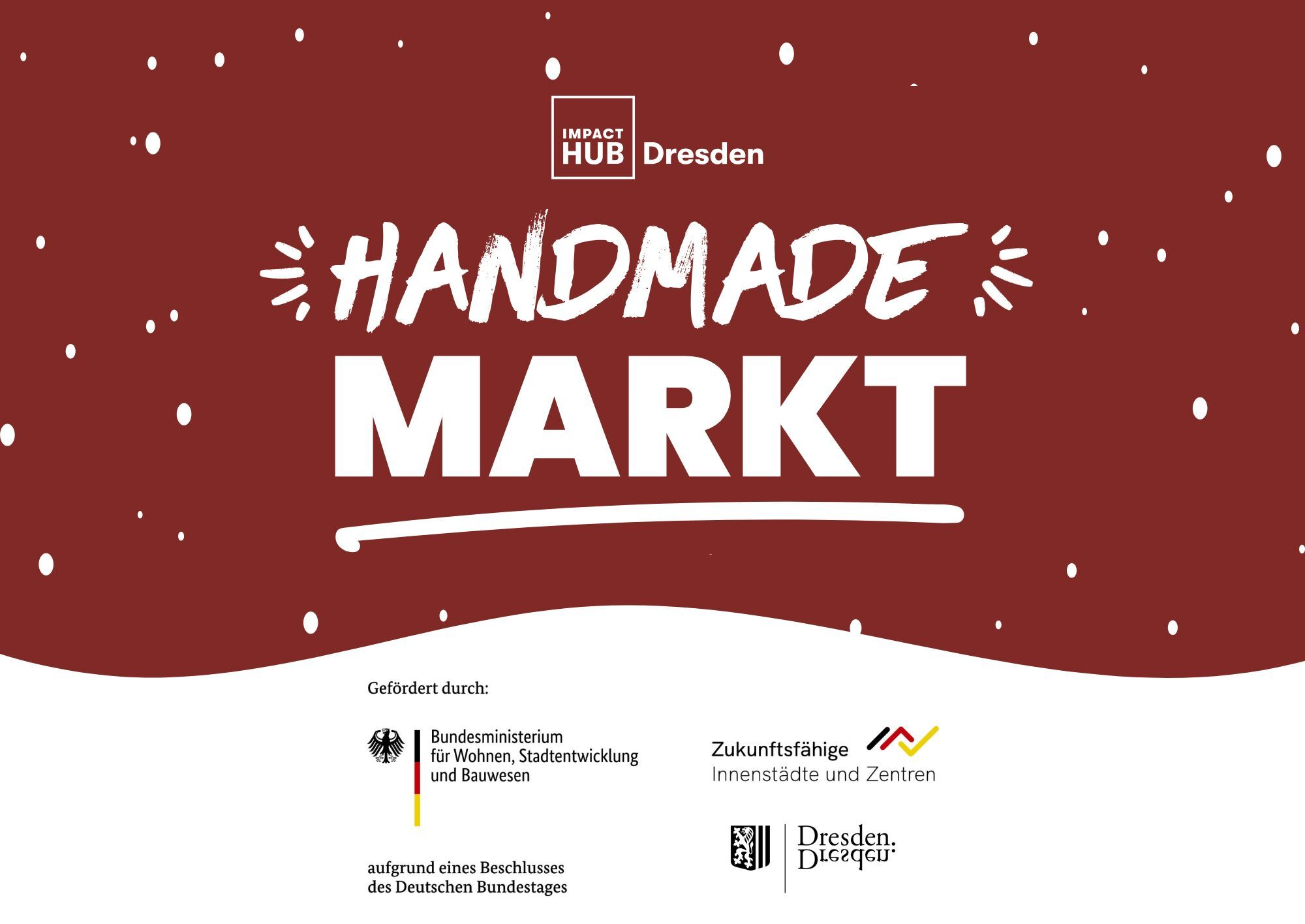 Handmade-Markt auf dem Dippoldiswalder Platz: Wir laden euch zu einem kleinen, feinen vorweihnachtlichen Weihnachtsmarkt ein. Es ist unser erster Markt für schöne, leckere und nachhaltige Dinge.Wir schmücken den Dippoldiwalder Platz mit schönen Ständen, es wird Glühwein und Leckereien geben und auf unserer Eventfläche findet ihr viele Austellerinnen aus unserem Programm „Business, Baby!“.